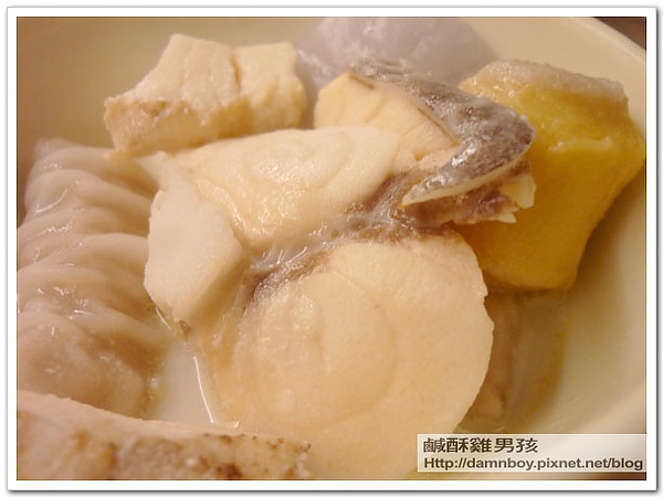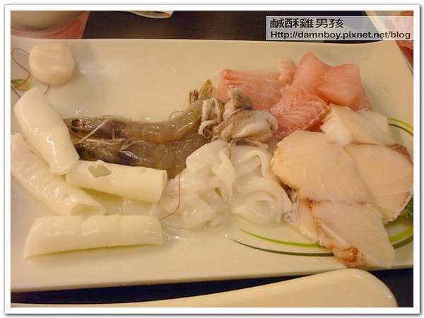 「大白蝦」、「鮮蚵」、「深海鱈魚片」是最驚艷的海鮮,「大白蝦」新鮮,吃起來脆甜。「鮮蚵」也新鮮,剛煮好入口蚵汁四射,爆漿的汁液有海水的鹹味。「深海鱈魚片」原本不是很期待,因鮮少在吃到飽火鍋店吃到好吃的鱈魚片,多半嚐起來會有腥味,而這裡鱈魚片吃起來微甜多汁,令人頗為驚訝。